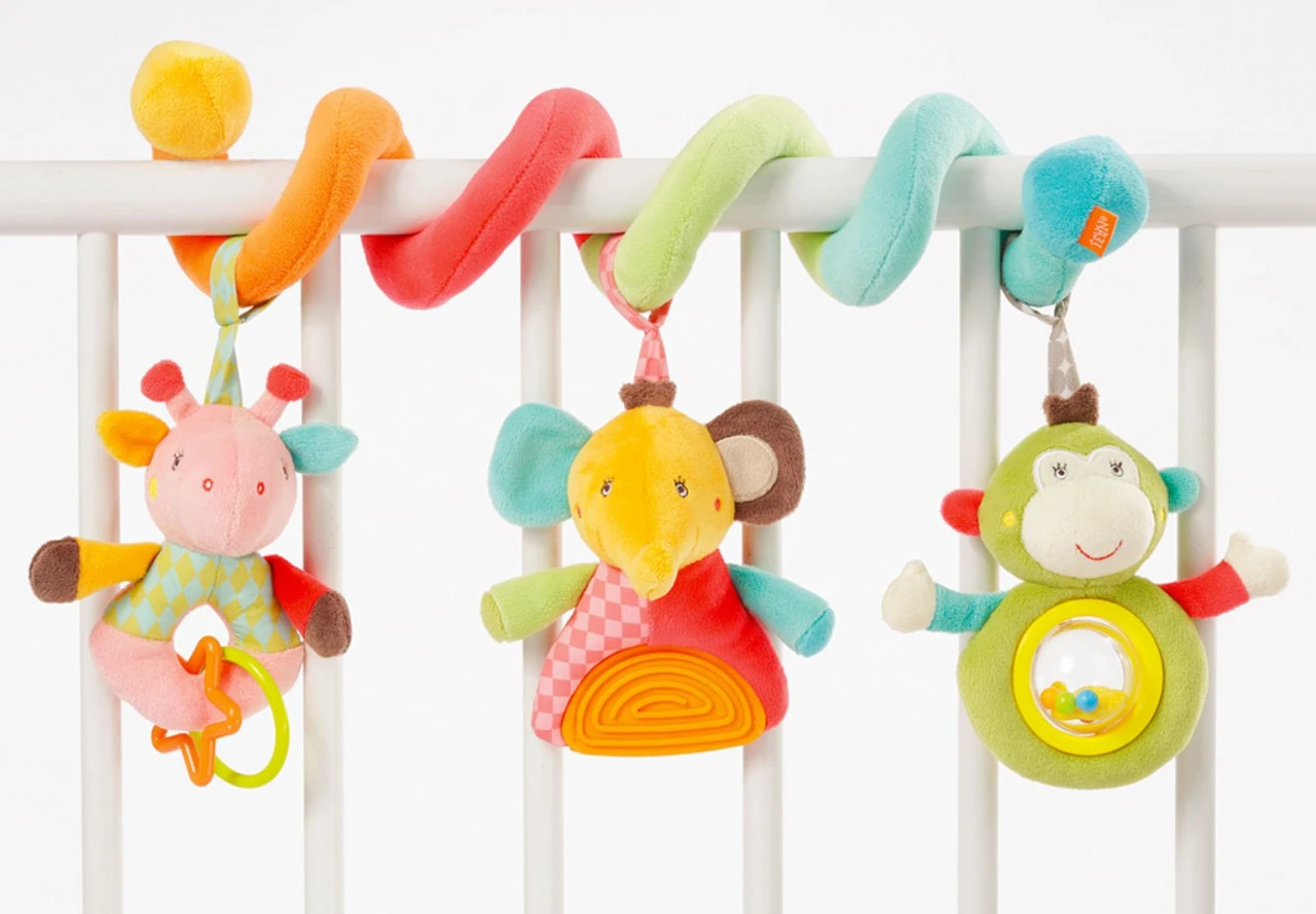 Die farbenfrohe und spielerisch gestaltete Activity-Spirale SAFARI gefällt durch eine hochwertige Verarbeitung und ein perfekt für Kinder gefertigtes Design. Die Spirale ist vielseitig einsetzbar lässt sich problemlos an einem Kinderwagen oder über einem Kinderbett befestigen und sorgt durch die schönen Applikationen in Form einer Giraffe, eines Elefanten und eines Affen, bei den Kindern für jede Menge Freude. Beschere deinem Kind eine fröhliche Zeit mit dem schönen Spielzeug.
