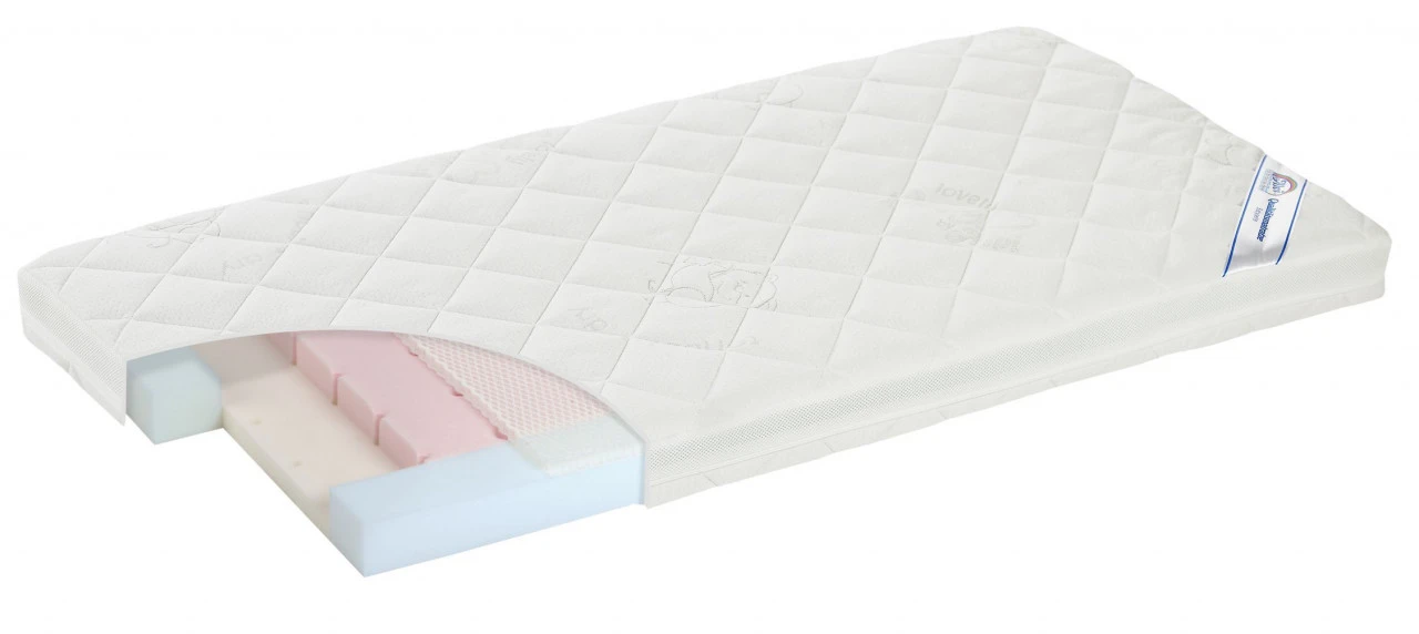 Vom Baby bis ins Kindesalter schlafen Ihre Sprösslinge auf der Matratze STERNSCHEIN AIR von besonders erholsam. Auf der Babyseite mit 3-D Abstandgewirke auf Schaumplatte liegen Kinder in Ihren ersten Lebensmonaten gemütlich, danach auf der Juniorseite mit fester Schaumplatte. Der 2-Schichtkern aus Kaltschaum macht die Matratze bequem und bietet eine gute Körperunterstützung für Kinder. Die rundum trittfeste Kante stellt sicher, dass ihr Baby sich beim Aufstehen im Bett nicht verletzten kann.