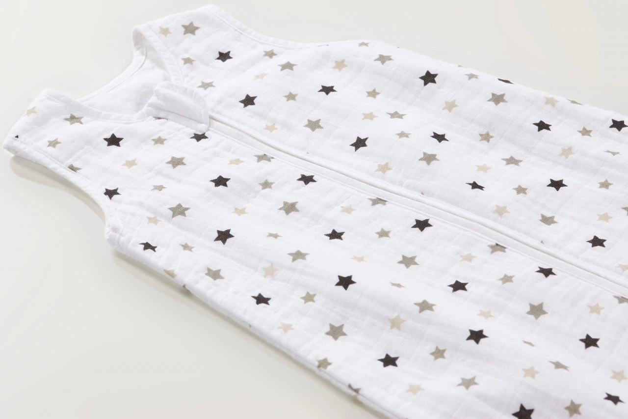 Des. Sterne grau, 110 cm weiches, atmungsaktives Material, verdeckter Reißverschluss mit Kinnschutz bis 60° waschbar, trocknergeeignet