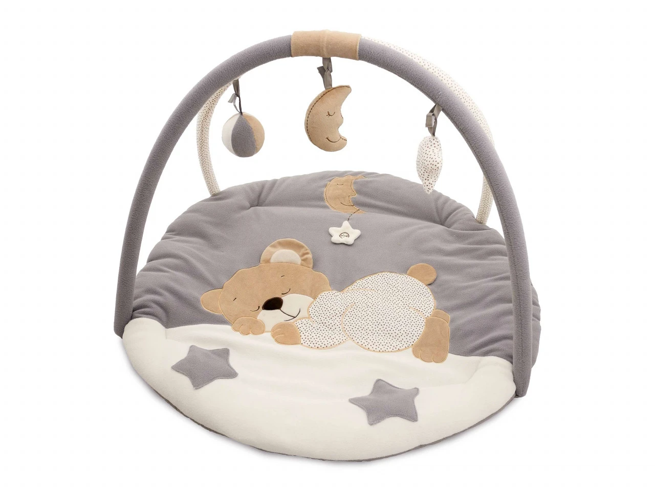 Die Erlebnisdecke SCHLAFBÄRCHEN ist ein kinderfreundliches Element und eine praktische Alltagshilfe. Die schöne Krabbeldecke in grau ist mit einem Spielbogen und beweglichen Figuren versehen, ist dadurch besonders interessant für die Kleinsten, die diese entdecken und erforschen können.