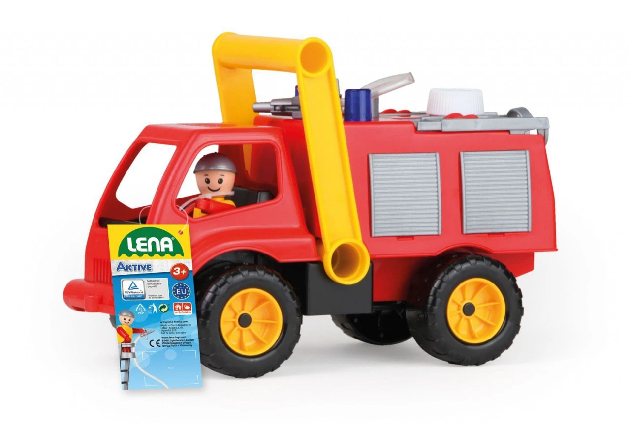 mit Wassertank und Spritzfunktion, Leiter und voll beweglicher Spiel- figur, abkippbares Führerhaus und Haltegriff