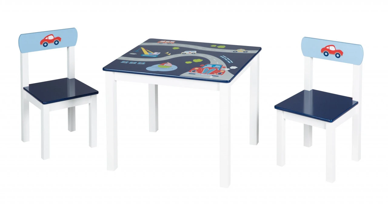 · Die 3-teilige Kindersitzgruppe Rennfahrer aus lackiertem und mit Fahrzeug-Motiven bedrucktem MDF ist ideal auf die Sitzbedürfnisse von 2- bis 10-jährigen Kindern zugeschnitten. Sie besteht aus einem formschönen Kindertisch und zwei passenden Stühlen in Weiß und Blautönen. Ihr aktiver Nachwuchs kann an der roba Kindersitzgruppe schon von klein auf bequem und komfortabel am Tisch sitzen, essen, spielen, malen und basteln.Mit den Produkten von roba können Kinder ihre Welt entdecken und viele schöne gemeinsame Momente mit ihren Eltern und Spielgefährten erleben.