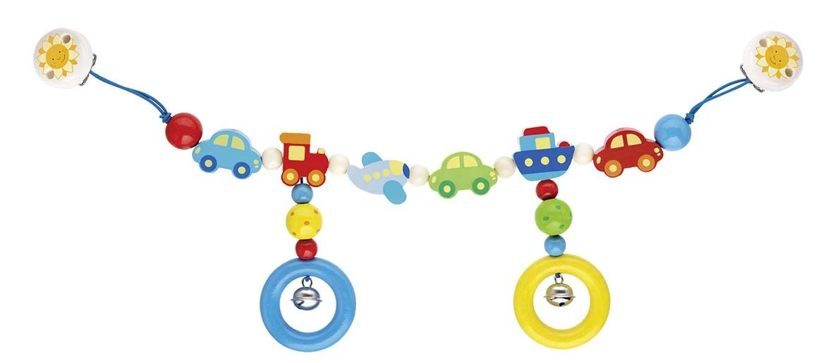 Besonders niedlich und kindgerecht gestaltet ist die Kinderwagenkette FAHRZEUGE. Die Kinderwagenkette ist aus Holz gefertigt und zeigt sich im farbenfrohen Design. Verschiedene Transportmittel, Kugeln, Ringe und Glöckchen zeichnen die Kette aus und beschäftigen die Kleinsten unterwegs. Die Kinderwagenkette verschönert damit den Kinderwagen und zieht die Blicke deines Schützlings auf sich.