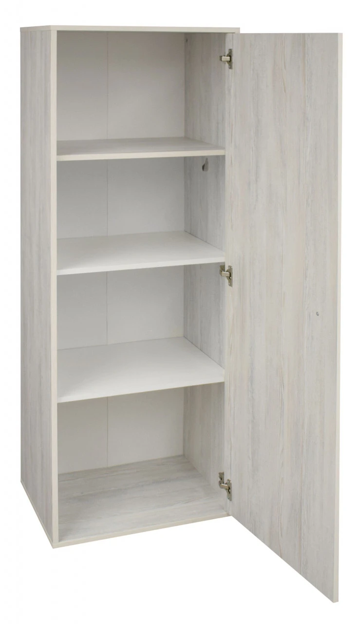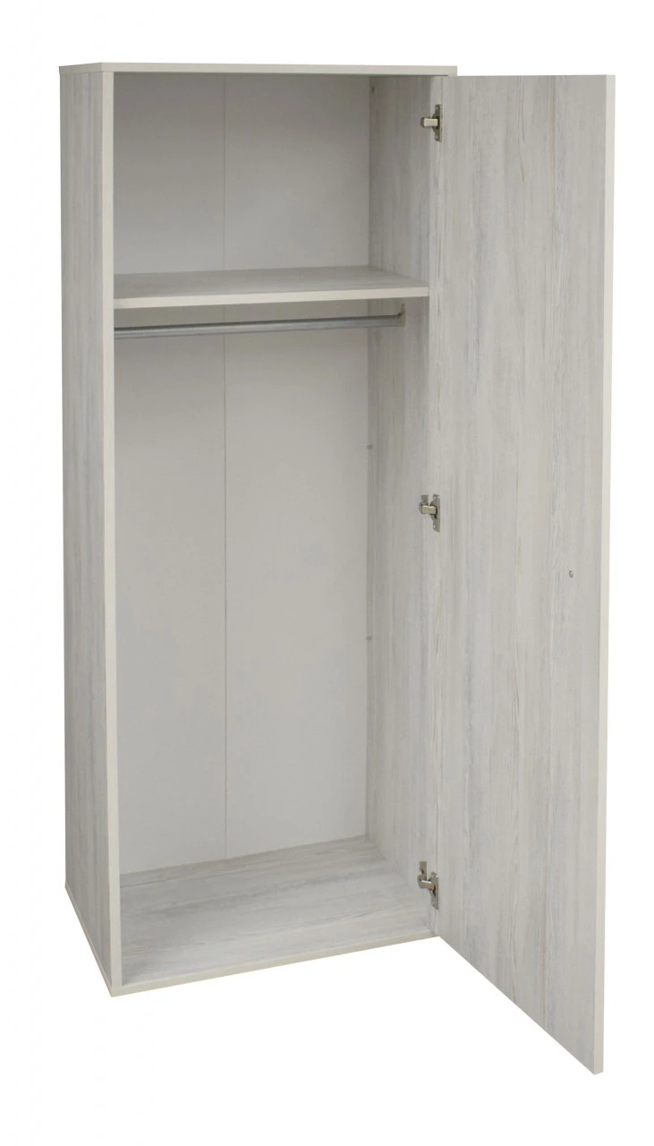 · eine Tür mit Dämpfung (beidseitig montierbar), ein Mittelboden, 2 Kleiderstangen und 2 Fächer