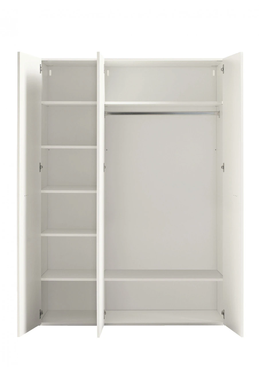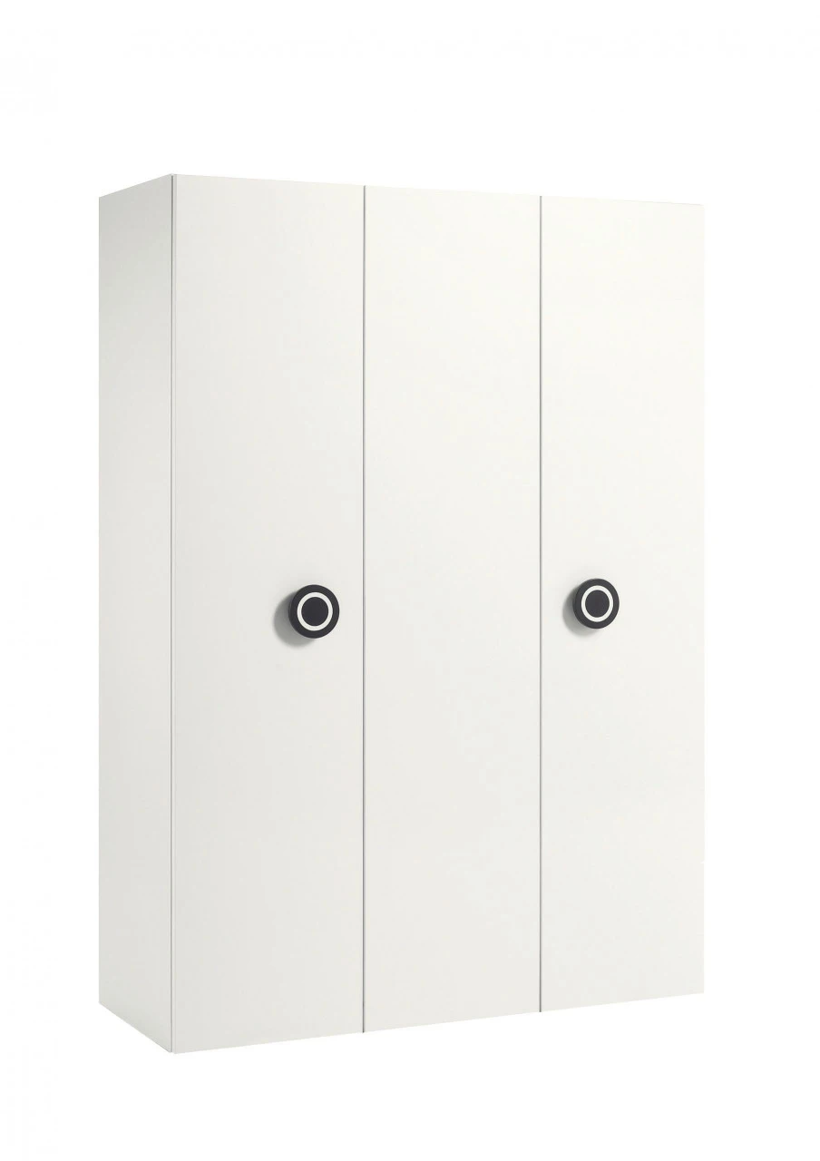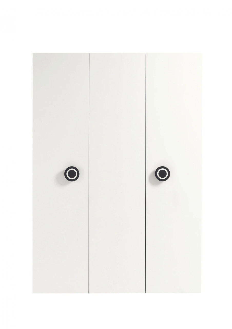 Der Kleiderschrank MINIMO der Trendmarke now! by hülsta überzeugt mit einem verspielten, aktuellen Design und einer hochwertigen Verarbeitung. Der Kleiderschrank ist aus robustem Dekor gefertigt und verfügt über drei leichtgängige Türen, sieben Einlegeböden und eine Kleiderstange. Runde, schwarze Griffe stehen in ansprechendem Farb- und Formkontrast zu dem weißen Korpus. MINIMO bietet großzügigen Platz um die gesamte Kleidung strukturiert und übersichtlich zu verstauen.