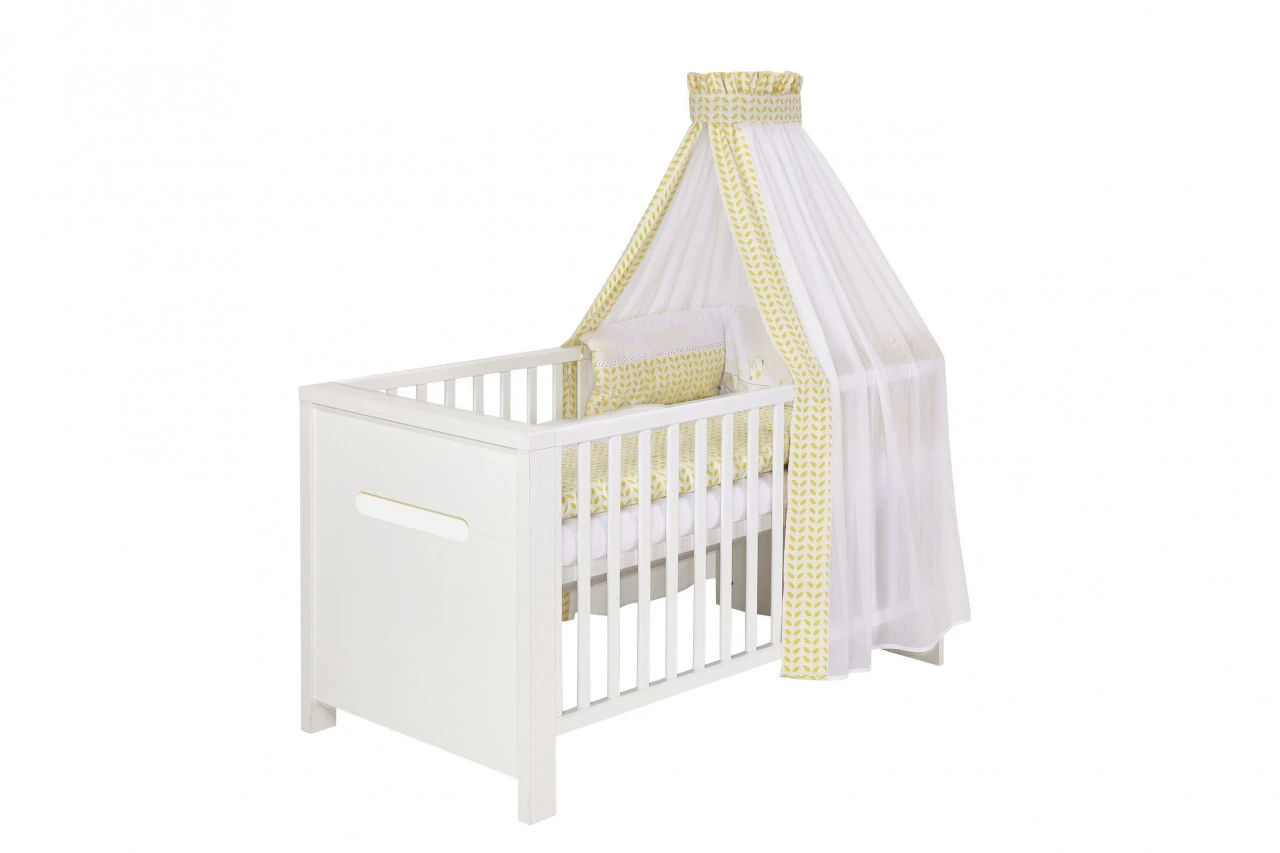 Des. Buche massiv,weiß lackiert mit 3 Schlupfsprossen, Lattenrost 3-fach verstellbar Mit den separat erhältlichen Umbauseiten zum Juniorbett umbaubar