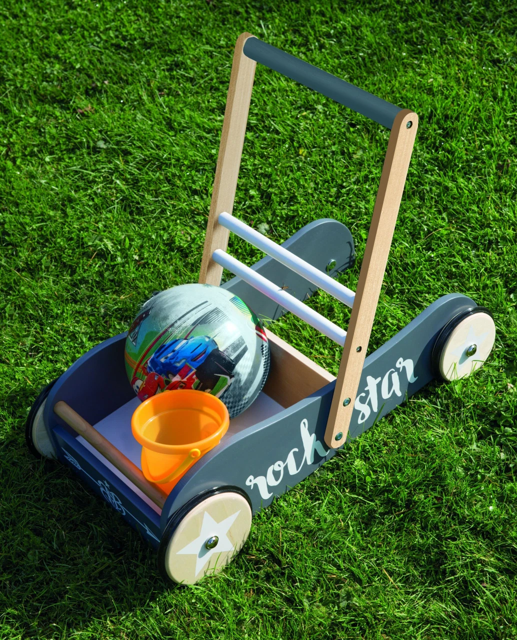 · Der schnittige Lauflernwagen hilft Laufanfängern ab 12 Monaten beim Hochziehen, Festhalten und Stützen und gibt Halt bei den ersten, noch unsicheren Schritten bis hin zum selbstständigen Laufen. Kippsicher, aus robustem Massivholz gefertigt und perfekt auf die ergonomischen Bedürfnisse von Kindern zugeschnitten, präsentiert sich der roba Lauflernwagen. Für geräuschreduziertes Fahren besitzt das heiße Gefährt für den Innen- und Außenbereich eine Gummibereifung auf Holzfelgen. Der Lauflernwagen wurde nach den aktuellsten Sicherheitsstandards in Deutschland entwickelt. Alle Materialien sind schadstoffgeprüft, zertifiziert und werden regelmässig während der Produktion getestet. Mit den Produkten von können Kinder ihre Welt entdecken und viele schöne gemeinsame Momente mit ihren Eltern und Spielgefährten