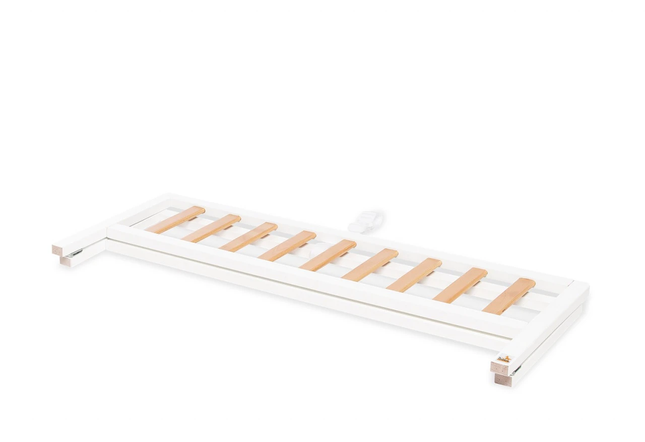 · Das Bettschutzgitter ist bereits vormontiert und kann daher direkt eingesetzt werden. Es lässt sich einfach unter die Matratze schieben und wird mit einem Verbindungsgurt am Lattenrost befestigt, sodass ein optimaler Schutz für Kinder gewährleistet ist