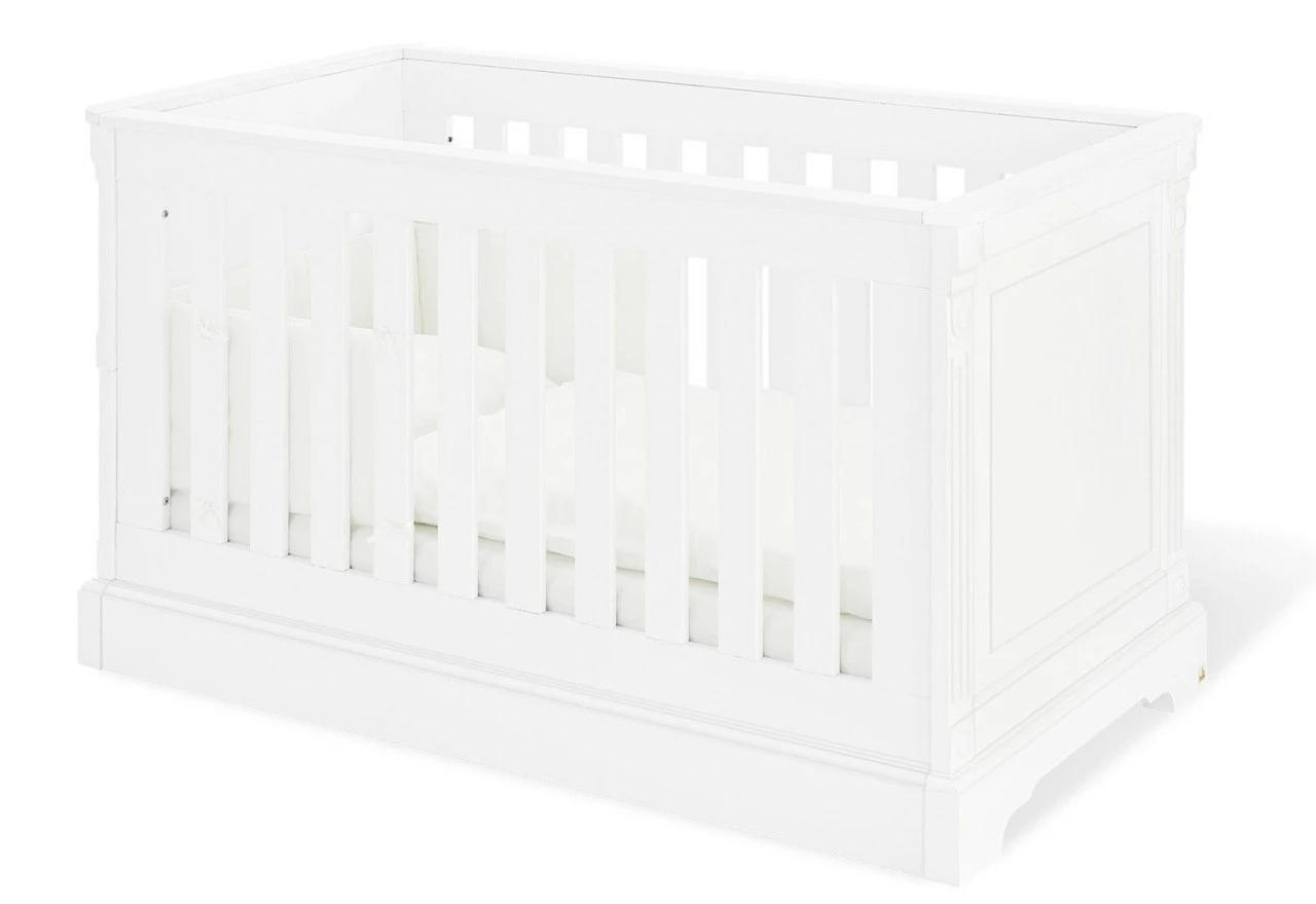 Zeitlos und modern – das Kinderbett Emilia von passt in jedes Babyzimmer. Dabei besteht das Bett aus weiß lackiertem MDF in Edelmatt und ist dadurch sehr schlicht. Dank der drei Schlupfsprossen und dem 3-fach höhenverstellbaren Lattenrost bietet es Ihrem Kind den nötigen Komfort. Da die Umbauseiten inklusive sind, lässt sich das Bett später kinderleicht zum Juniorbett oder Kindersofa umbauen. In diesem stabilen Bett wird Ihr Kind wunderbar schlafen!