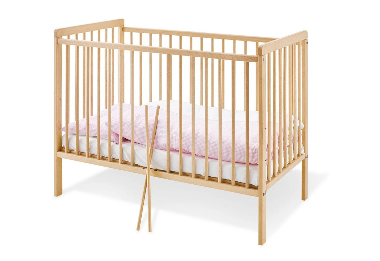 Das kleine, ökologische Kinderbett Hanna von besitzt Rundstäbe an allen vier Bettseiten und ist das perfekte Schlafmöbel im Babyzimmer für kleine Jungen und Mädchen. Insgesamt besteht das Bett aus vollmassiver, unbehandelter Buche, die Holzstruktur ist sehr gut sichtbar. Dabei verfügt das Kinderbett über zwei Schlupfsprossen und über ein 3-fach höhenverstellbares Lattenrost. Zudem sind die Umbauseiten inklusive, sodass das Bett umbaubar und damit lange nutzbar ist. Das Matratzenmaß beträgt 120 cm x 60 cm. In diesem stabilen Kinderbett wird Ihr Kind traumhaftschön schlafen!