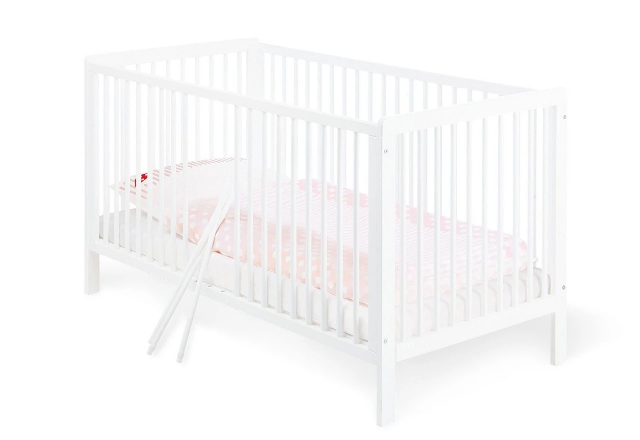 Das stabile Kinderbett Lenny von ist das perfekte Schlafmöbel für kleine Jungen und Mädchen. Insgesamt besteht das Bett aus weiß lackierter, vollmassiver Kiefer. Die Holzstruktur ist sichtbar und das Bett besitzt an allen vier Seiten Rundstäbe. Dabei verfügt das Kinderbett über drei Schlupfsprossen und über ein 3-fach höhenverstellbares Lattenrost. Zudem sind die Umbauseiten inklusive, sodass das Bett umbaubar und damit lange nutzbar ist. Das Matratzenmaß beträgt 140 cm x 70 cm. In diesem stabilen Kinderbett wird Ihr Kind wunderbare Nächte erleben!