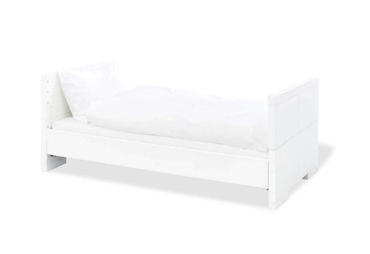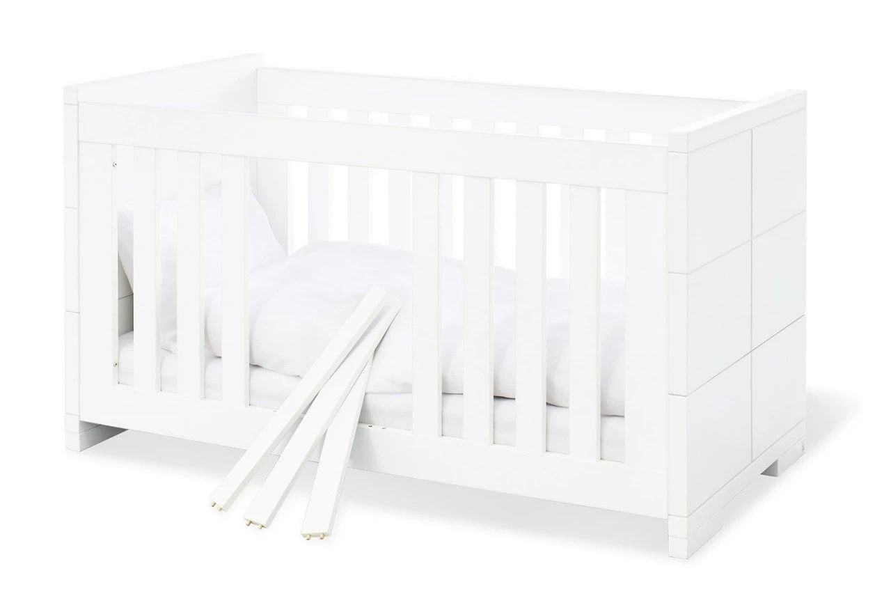 Das Kinderbett Polar von ist mit seinem puristischen Design und seiner edelmatten Oberfläche das ideale Schlafmöbel für kleine Jungen und Mädchen. Dabei besteht das Bett aus edelmatt weiß lackiertem MDF und wirkt dadurch sehr zeitlos. Dank der drei Schlupfsprossen und dem 3-fach höhenverstellbaren Lattenrost bietet es Ihrem Kind den nötigen Komfort. Da die Umbauseiten inklusive sind, lässt sich das Bett später kinderleicht zum Juniorbett oder Kindersofa umbauen. In diesem stabilen Bett wird Ihr Kind wunderbar schlafen!