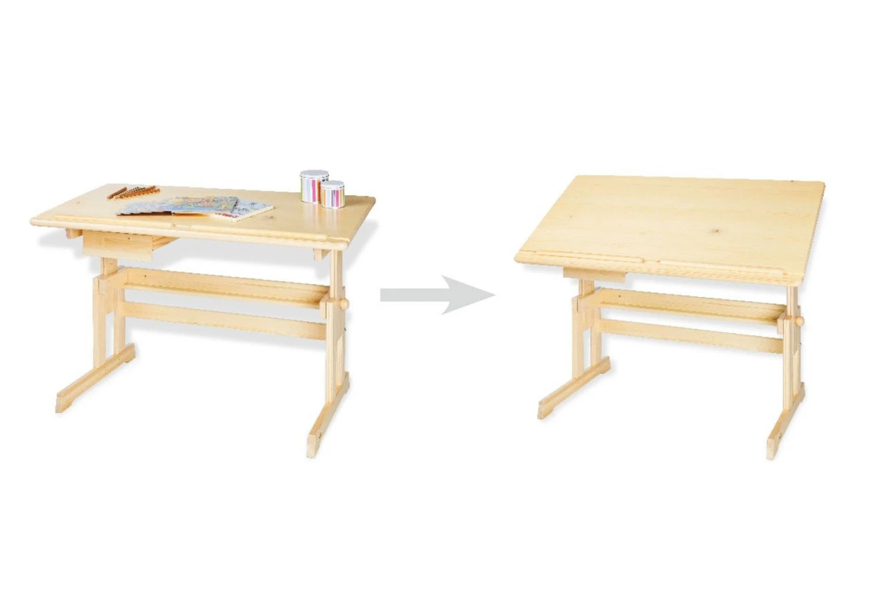 Der stabile Kinderschreibtisch Lena von ist die optimale Grundlage für viele Schuljahre. Die Holzstruktur ist sehr gut sichtbar und sorgt für gemütliche Akzente im Kinderzimmer. Durch die 5-fach in der Höhe verstellbare (57 cm bis 70 cm) und bis 55 Grad neigbare Arbeitsplatte ist dieser Schreibtisch nicht nur mitwachsend, sondern auch individuell einstellbar.