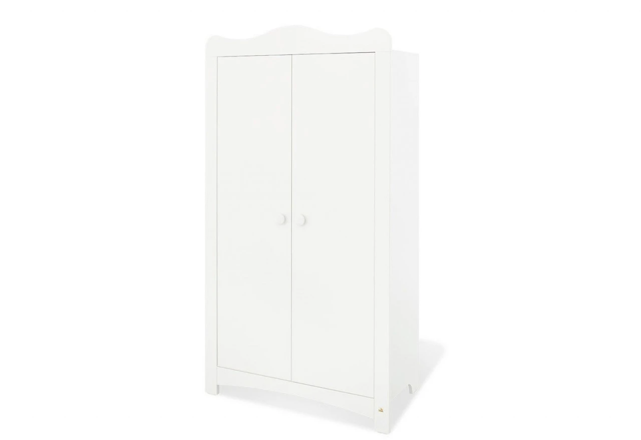 Durch die elegante und geschwungene Form bringt der Schrank Florentina von ein liebevolles Ambiente in das Reich der Kleinsten. Mit den 3 Möbelknopf-Sets in den trendfarben Weiß, Rosa und Mint kann das Zimmer nach eigenem Wunsch individualisiert werden. Durch seine 2 Türen bietet der Schrank ausreichend Stauraum für alles, was im Kinderzimmer verstaut werden muss.