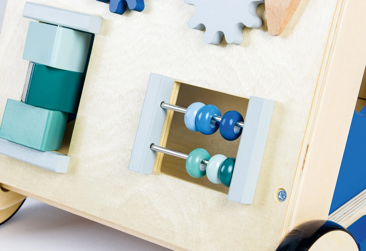 · Viele bunte Spielmöglichkeiten, rückseitiges Ablagefach und 3 Steckklötze sorgen für jede Menge Abwechslung beim Spielen, wenn mal eine Laufpause eingelegt wird.