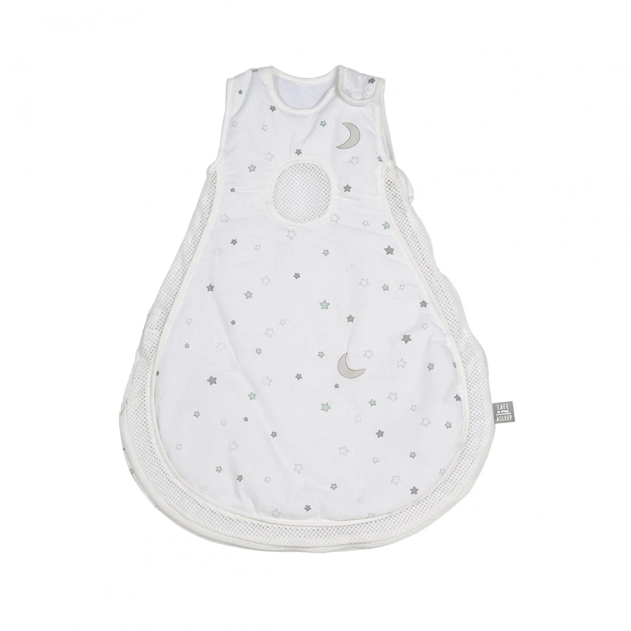 · Der Safe Asleep Babyschlafsack Easy Air im niedlichen Sternenzauber-Design ist mit dem innovativen und zertifizierten AIR-balance System ausgestattet, das wie eine natürliche Klimaanlage wirkt. Er ist leicht wattiert für warmes Wetter und Raumtemperaturen von 15 bis 24 Grad geeignet. Das AIR-balance System verbessert die natürliche Luftzirkulation und sorgt für einen Temperaturausgleich, wodurch ein gefährlicher Hitze- und Feuchtigkeitsstau vermieden wird. Ein optimales Schlafklima wird durch den seitlich rundum laufenden Mesh-Einsatz und den Mesh-Einsatz im Brustbereich des safe asleep® Babyschlafsacks erreicht. Durch die hohe Atmungsaktivität und schnelle Feuchtigkeitsaufnahme und -abgabe entsteht ein gesundes Schlafklima. Maßgeblich entscheidend bei der Auswahl eines Babyschlafsacks ist die Größe. Ist der Schlafsack zu groß, friert Ihr Baby leichter und kann im schlimmsten Fall hineinrutschen. Ist der Schlafsack zu klein, fühlt sich Ihr Kind eingeengt und kann nicht richtig strampeln. Folgende Faustregel gilt bei der Wahl der perfekten Schlafsack-Größe: Körperlänge – Kopflänge + 10 cm. Diese zusätzlichen 10 cm geben Ihrem Baby ausreichend Bewegungsfreiheit und ermöglichen ein Hineinwachsen. Ebenso wichtig ist es, den TOG-Wert und damit die Dicke des Schlafsacks passend zur Raumtemperatur zu wählen. Safe Asleep® Schlafsäcke sind in diversen Designs und Größen für jede Jahreszeit und Raumtemperatur erhältlich und somit perfekt auf die Bedürfnisse Ihres Babys abgestimmt.