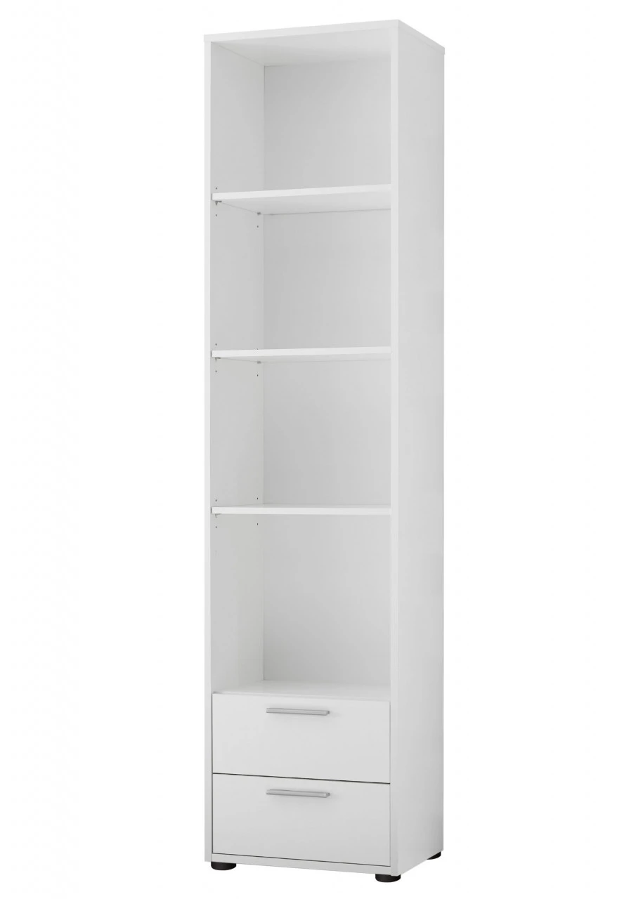 Das Standregal BIBO begeistert mit einem schlichten, modernen Look im Kinderzimmer. Das Regal in Weiß verfügt über zwei Schubkästen und vier offene Fächer. Darin lassen sich ganz bequem Bücher, Spielzeug und weiterer Zubehör verstauen.