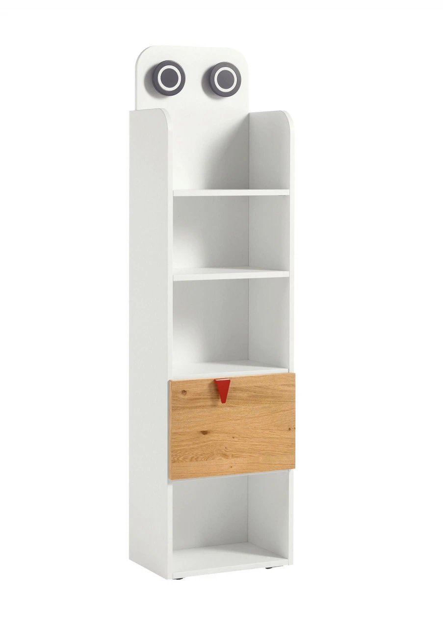 Das Standregal MINIMO der Trendmarke now! by hülsta überzeugt mit einem verspielten, aktuellen Design und einer hochwertigen Verarbeitung. Das formschöne Standregal ist aus robustem Dekor gefertigt und verfügt über drei offene Fächer und eine geräumige Schublade mit Vollauszug und angenehmer Soft-Close-Funktion. Ein roter, dreieckiger Griff steht in ansprechendem Farb- und Formkontrast zu dem weißen Korpus und der Schubladenfront in heller Natureiche. MINIMO bietet großzügigen Platz um diverse Gegenstände strukturiert und übersichtlich zu verstauen.