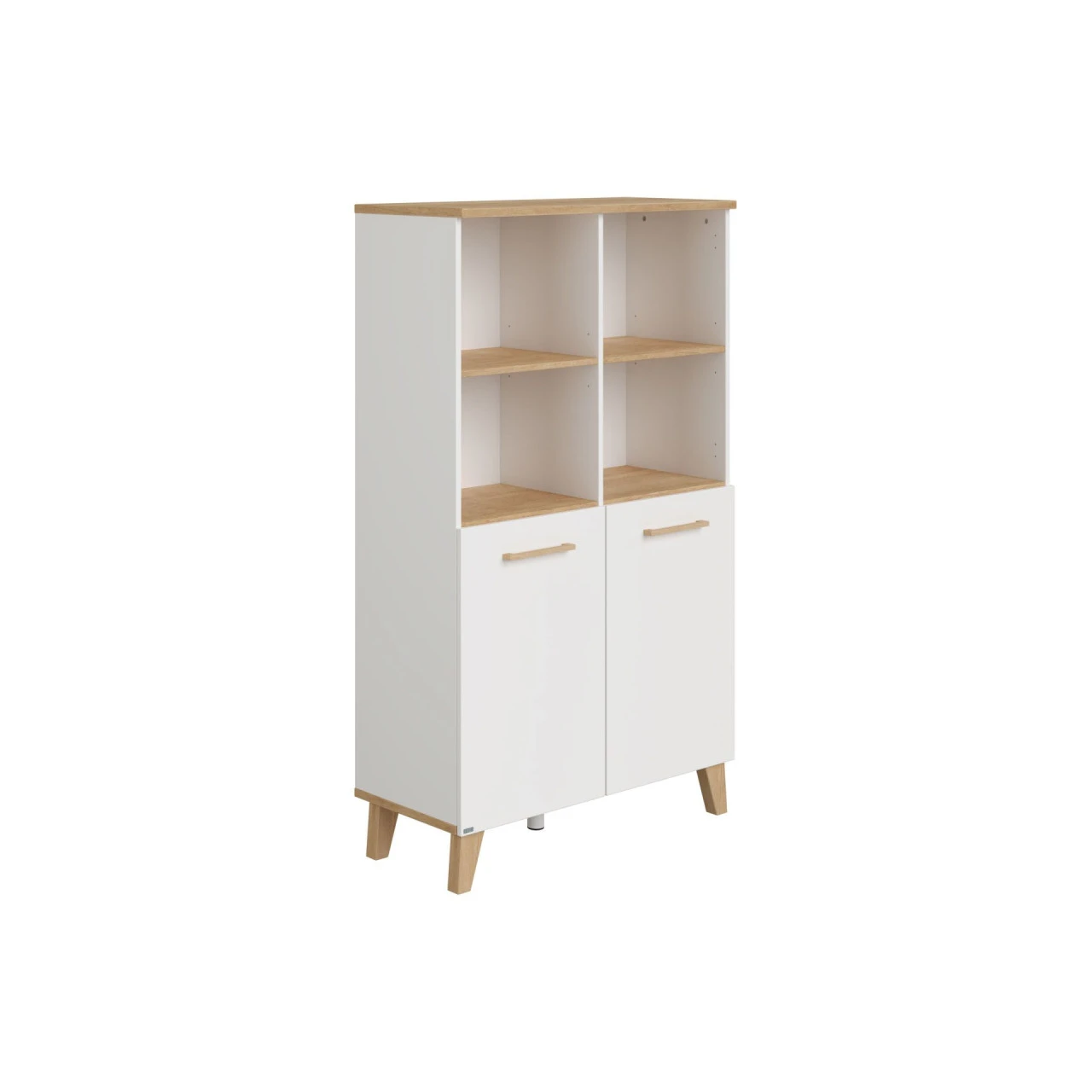 Korpus und Front Dekor Kreideweiß, Deckplatte Nachbildung Eiche-Nebraska, Griffe und Füße Eiche massiv, mit 2 Türen