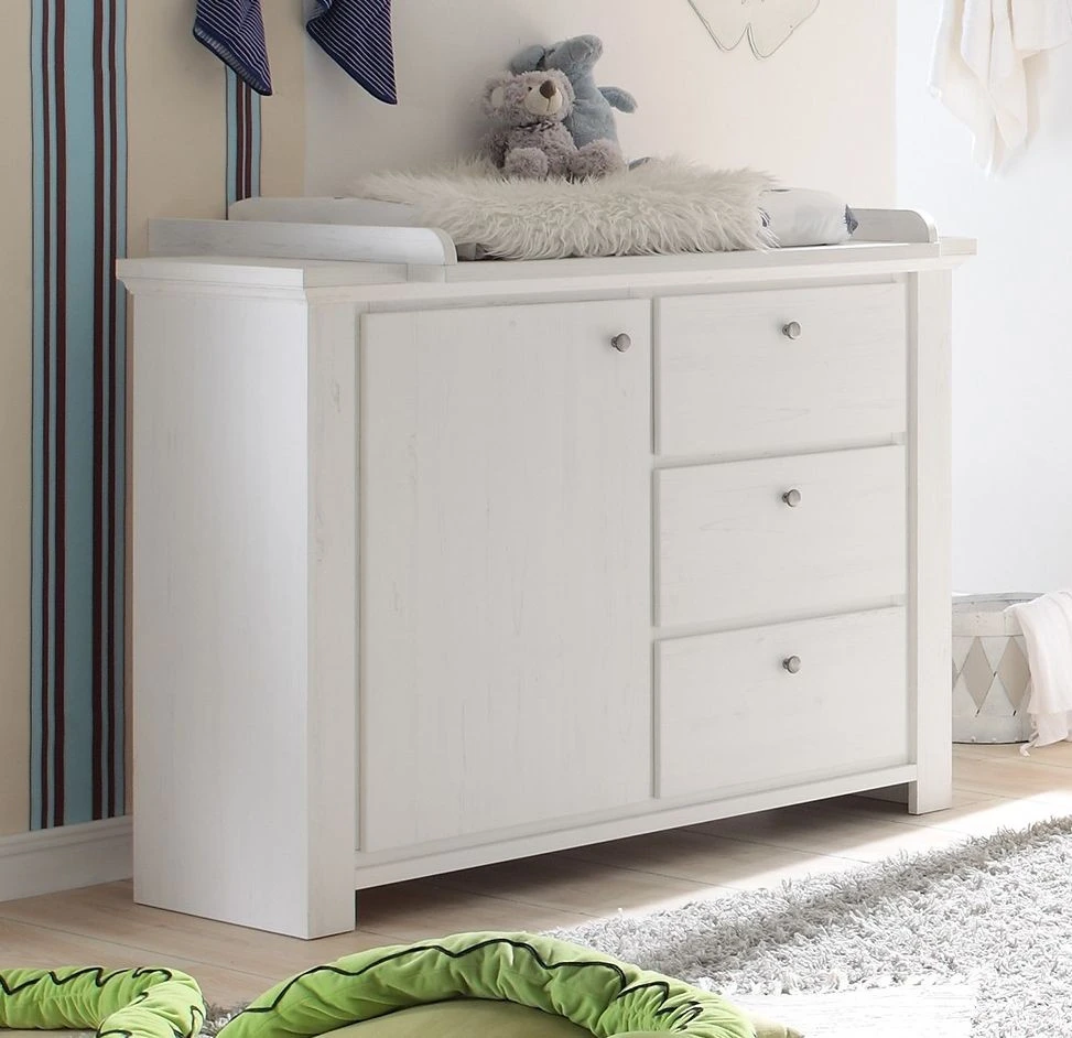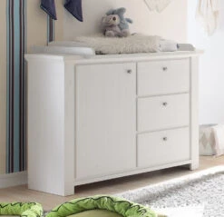 · 2 Sicherungsleisten, 2 abnehmbare Ablage (Wickelfläche ca. 87×71 cm), eine Tür, ein verstellbarer Einlegeboden, 3 Schubkästen mit Selbsteinzug